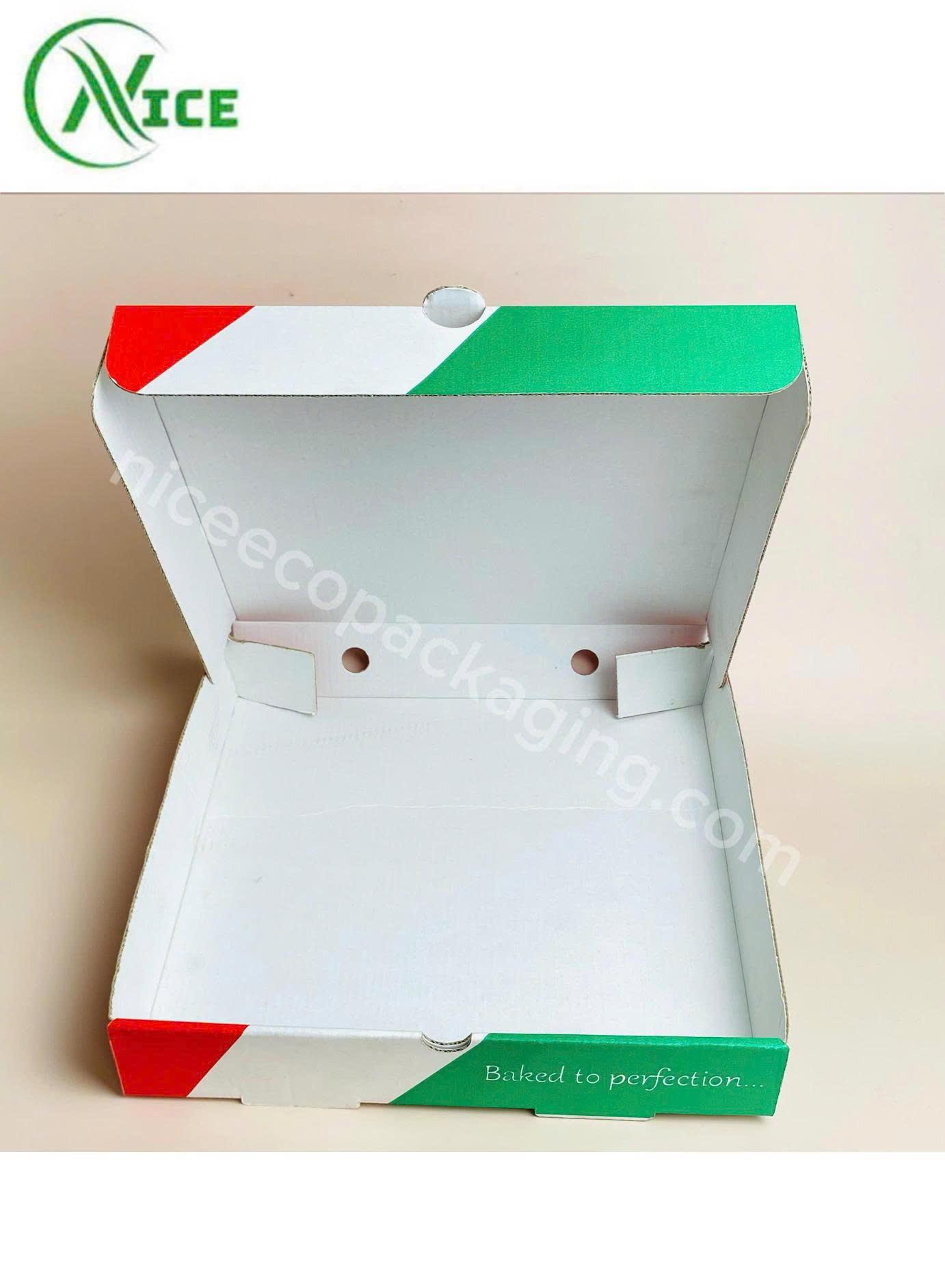Hộp pizza NICE được sản xuất từ giấy carton sóng chất lượng cao, mang đến những đặc tính vượt trội: