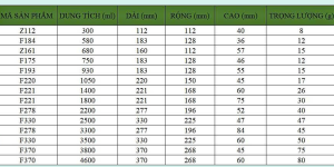 BẢNG KÍCH THƯỚC HỘP LÁ NHÔM CHỮ NHẬT THÔNG DỤNG: